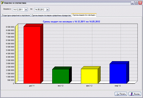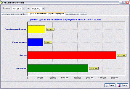 //Суммы выдач по видам кредитных продуктов: