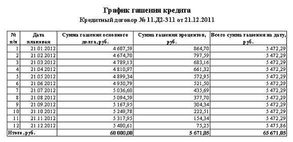 - график гашения кредита;
