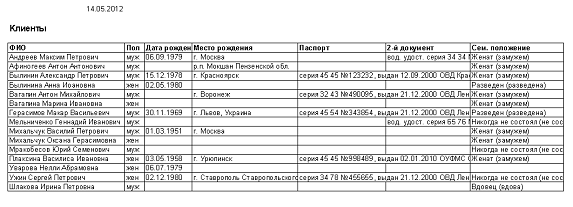 - список клиентов Банка;