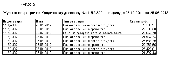 - журнал операций по кредитам;