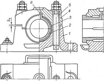 заменена вкладышами 2 и 3, корпус подшипника разъемный и состоит из собственно