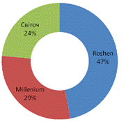 ринку кондитерських виробів. Асортимент нараховує різні види шоколаду,