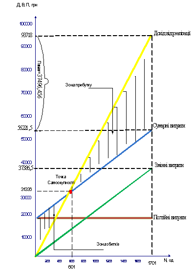 де можна побачити точку самоокупності та зони прибутків і збитків.