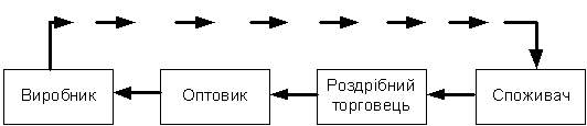 дворівневий, тобто виробника та споживача розділяє оптовий та роздрібний