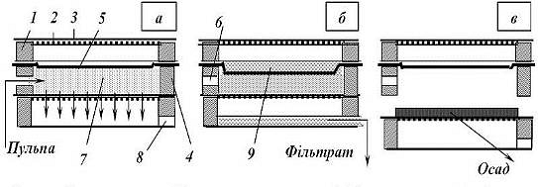 тканини, а фільтрат протікає крізь шар осаду і тканину і видаляється по каналу