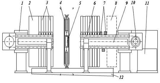 6-ланцюг механізму переміщення плит; 7- напрямлені ролики; 8- притискна плита;