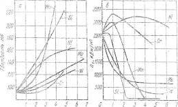 элементов. Как видно из диаграмм, хром, молибден, вольфрам упрочняют феррит