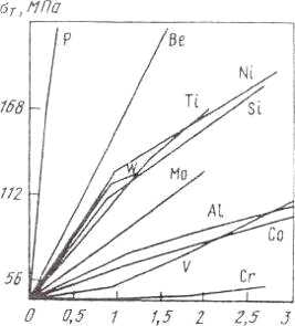 текучести железа от содержания легирующих элементов замещения