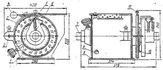 електродвигуна. Між редуктором і валом диска розташована черв'ячна передача 10.