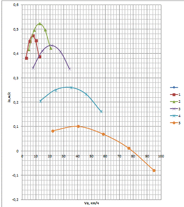 м/с2 на первой передачи, минимальное -0,029 м/с2 на