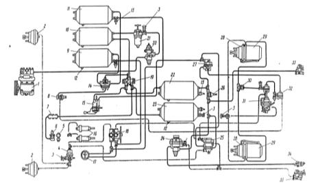 Рис.16. Схема пневматического тормозного привода