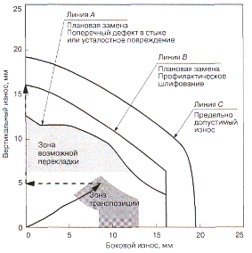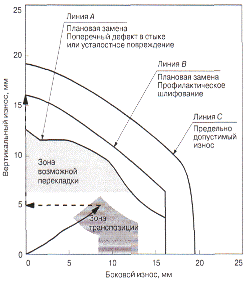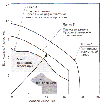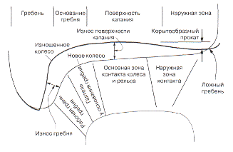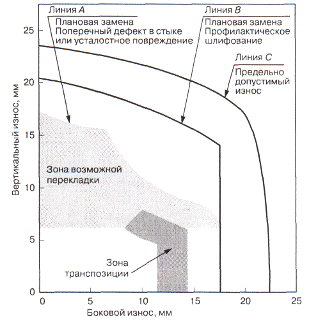 рабочей выкружки рельса и гребня колеса до общего профиля вследствие