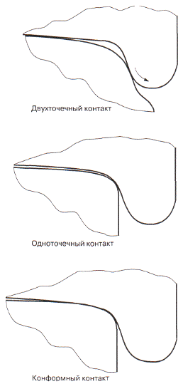двухточечный контакт, одноточечный контакт, конформный контакт*.