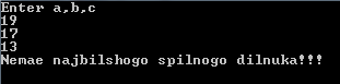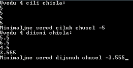 >> c>>d;<<"Minimaljne sered ciluh chusel