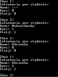 SetName ("Adrienko");<< "\n\nShow 1: ";. Show ();.