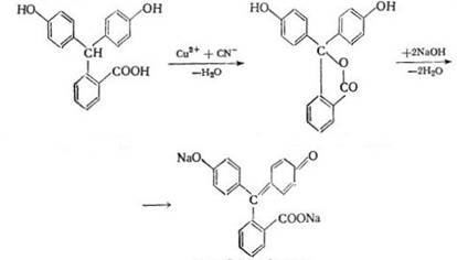 реакція - основана на окиснені фенолфталіна до фенолфталеїна при взаємодії з ціанідною