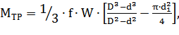 Из условия равновесия диска определим силу зажима (W):