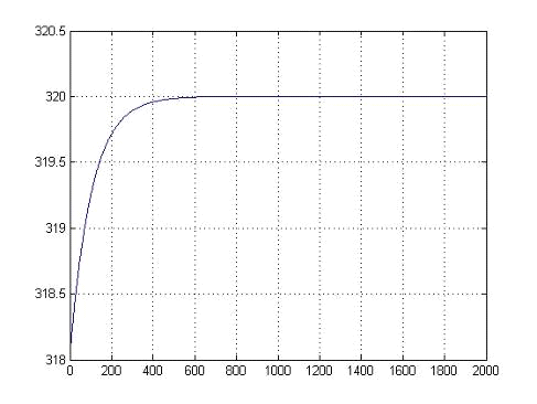 =7.63;=104.44;=320;=zeros(5,1);(1)=(v/V)*(1500-c(1))+K1*c(2)*exp(-Er/c(5))-K4*c(1)*exp(-Er/c(5));(2)=(v/V)*(0-c(2))+K2*c(3)*exp(-Er/c(5))-K1*c(2)*exp(-Er/c(5));(3)=(v/V)*(0-c(3))+K4*c(1)*exp(-Er/c(5))-K3*c(3)*exp(-Er/c(5))-K2*c(3)*exp(-Er/c(5));(4)=(v/V)*(0-c(4))+K3*c(3)*exp(-Er/c(5));(5)=(v/V)*(300-c(5))+(1/Cpcm)*((H1)*K1*c(2)*exp(-Er/c(5))+(H2)*K2*exp(-Er/c(5))*c(3)+(H3)*K3*c(3)*exp(-Er/c(5))+(H4)*K4*exp(-Er/c(5))*c(1))+(Kt*F/(V*Cpcm))*((F*Kt*c(5)+2*Cpx*(vx*c(6)/100)*Txo)/(F*Kt+2*Cpx*(vx*c(6)/100))-c(5));(6)=-Kp*((v/V)*(300-c(5))+(1/Cpcm)*((H1)*K1*c(2)*exp(-Er/c(5))+(H2)*K2*exp(-Er/c(5))*c(3)+(H3)*K3*c(3)*exp(-Er/c(5))+(H4)*K4*exp(-Er/c(5))*c(1))+(Kt*F/(V*Cpcm))*((F*Kt*c(5)+2*Cpx*(vx*c(6)/100)*Txo)/(F*Kt+2*Cpx*(vx*c(6)/100))-c(5)))+(Kp/Tu)*(Tz-c(5));