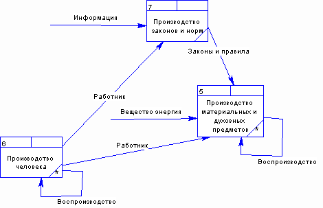 стрелка снизу обозначает оборудование, энергию и информацию, при помощи которых