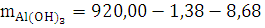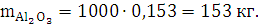 на образование одной тонны чистого сульфата алюминия, по формуле (3.35):