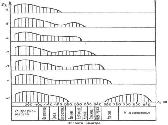 панхроматических, е - изопанхроматических, ж - инфрахроматических.