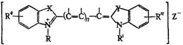 =0-7, Z-кислотный остаток. Основные сенсибилизаторы-производные бензотиазола и