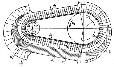 схема чертежа 3.Эпюра напряжения в ремне при работе передачи