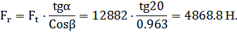 Принимается произвольно угол наклона зубьев β=10о. Определяется число зубьев шестерни и колеса: