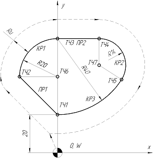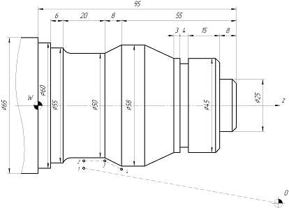 обработки в абсолютных числах, перемещение инструмента на быстром ходу в
