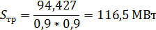 По рассчитанному значению выбираем трансформатор, такой мощности нет.