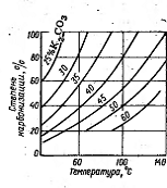 зависит от степени извлечения СО2, температуры, общего и парциального давления