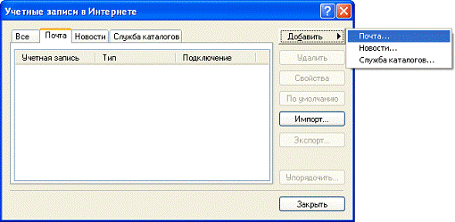 У діалоговому вікні Облікові записи в Інтернеті у вкладці Пошта з'явиться