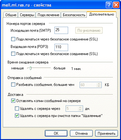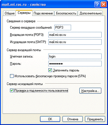 У вікні mail.mi.ras.ru - властивості натисніть вкладку
