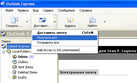 і забирає на локальний комп'ютер повідомлення, що прийшли за минулий період на
