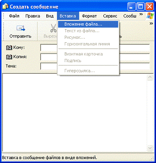 Щоб додати до листа який небудь файл, натисніть меню Вставка і в