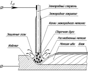 Рисунок 1 - Схема зварювання покритим металевим електродом