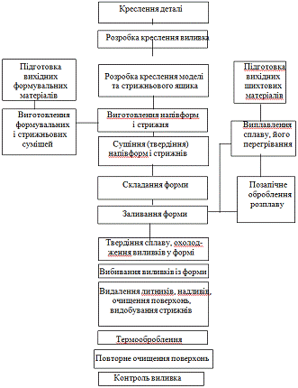 ливарних стрижнів і заключних операцій виготовлення виливка.