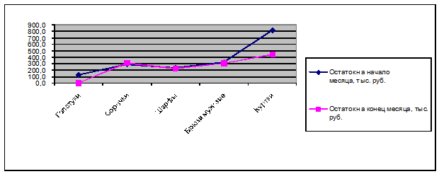 данных - остаток на начало месяца и остаток на конец месяца. На графике Рис.4