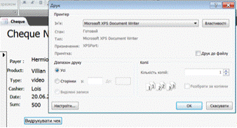 ідентифікаторів, тобто ключів. З натисканням кнопки «Видрукувати чек» зроблений