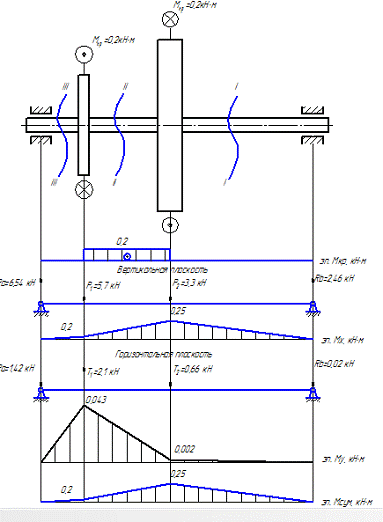 изгибающих моментов. Для этого нужно рассмотреть несколько сечений вала и