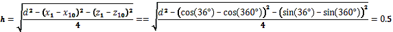координатами вершин xi=cos (36°i), zi=sin (36°i), yi=
