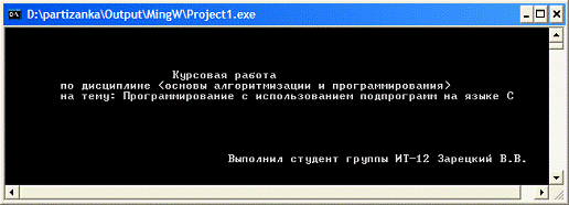 ("\n\n\n\n\n\t\t\t\tВыполнил студент группы ИТ-12 Зарецкий В.В. "));