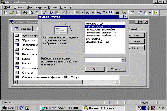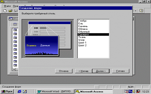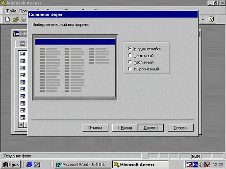 метода создания форм - Мастер форм. После нажатия кнопки Ok, переходим к