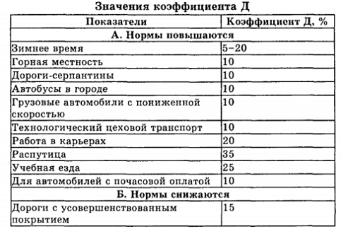 и другие факторы, формирующие расход топлива, при этом увеличение норм