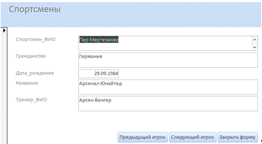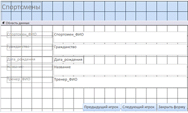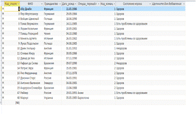 спортсменов. Для это ведется специальная таблица «Спортсмены» в которой каждому