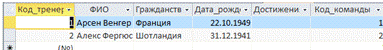 В базе данных тренера спортивного клуба ” для вывода необходимой