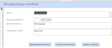 команда входит в определенный клуб, у каждого клуба есть определенный владелец,