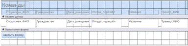 информацией о спортсменах находящиеся состоящие в определенных командах, каждая