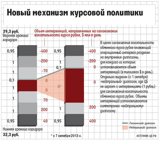Действующий механизм сглаживания колебаний курса рубля предполагает