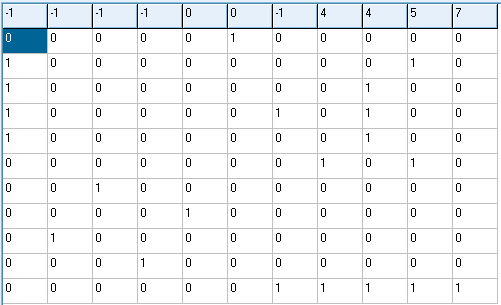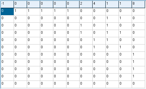 to nm+nr doFMatr[i,j]>0 then:=j-nm;;;;:=-1;;:=FMatr;;i:=0 to n doj:=0 to n